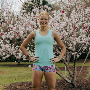 The super soft Polyester/Elastane fabrics extra light and moves and stretches in all the right places allowing only comfort and style on your run! The best girls running singlet ever!