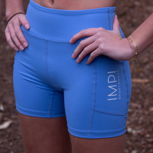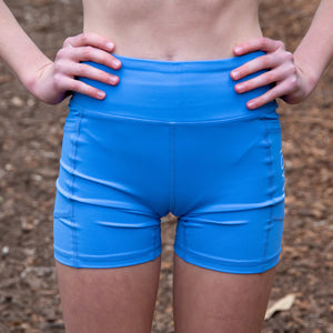 These Cornflower Running Shorts have a longer leg and are constructed using RECYCLED polyester. They also feature convenient side pockets for storing keys, phones, or even airpods!
